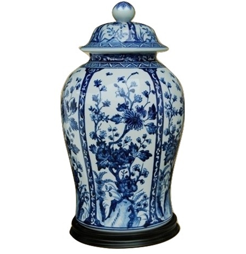 Stunning paneled floral jar. This jar epitomizes elegance, adorned with intricate paneled floral scenes throughout its body.